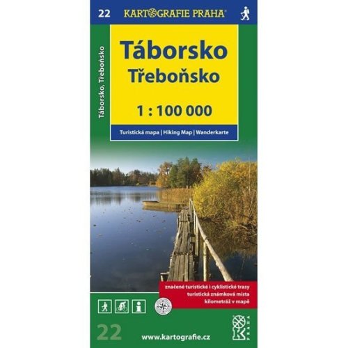 Malebná část jižních Čech mezi Táborem a Třeboní je náplní další "stovkové" turistické mapy Kartografie Praha. Mapová stana obsahuje kromě podrobného turistického obsahu a značených turistických a cykloturistických tras také zákres Turistických známkových míst. Mapy jsou kvalitně zpracovány a mají pěkný design. Na zadní straně mapy najdete popis většiny významnějších lokalit včetně několika fotografií, seznam Turistických známkových míst a další praktické informace. Na vložené skládačce je podrobná kilometráž turistických značených tras.