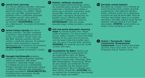 Můžete je používat při přebalování, při jídle, na procházce, na výletě nebo na dovolené, vlastně kdekoli. Kromě čištění po výměně pleny jsou skvělé také pro čištění špinavých ručiček po hře nebo tvářičky po jídle.