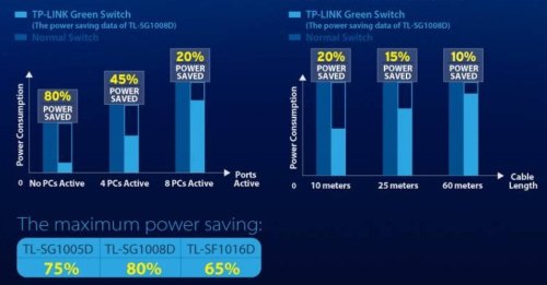 Tento switch TL-SF1016D Fast Ethernet nové generace je vybaven nejnovějšími technologiemi pro úsporu energie, které výrazně rozšiřují kapacitu vaší sítě při mnohem nižší spotřebě energie. Automaticky upravuje spotřebu energie podle stavu připojení a délky kabelu a zmenšuje tak karbonovou stopu vaší sítě.