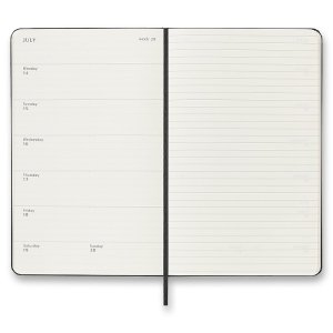 Gramáž papíru 70 g/m², neobsahuje kyseliny. Papír má slonovinovou barvu a je vyroben z FSC certifikovaného dřeva., Rozměr: 13 x 21 cm, 104 listů., Velikosti diářů:, * XS - 6,5 x 1,5 cm, * S - 9 x 14 cm (A6), * L - 13 x 21 cm (A5), * XL - 19 x 25 cm (B5), Včetně 3 archů tematických samolepek., Diář je v anglickém jazyce., , Tip: K diáři byste mohli potřebovat i psací potřeby Moleskine., O ZNAČCE MOLESKINE:, Příběh značky MOLESKINE se začal psát již v 19. století ve Francii, kdy vznikl produkt s velkou tradicí. Zápisníky MOLESKINE si oblíbili významní umělci a myslitelé jako Vincent van, Gogh, Pablo Picasso či Ernest Hemingway. Dnes je značka Moleskine synonymem pro kulturu, cestování, kreativitu a osobní identitu, a to jak v reálném světě, tak i ve světě digitálním., MOLESKINE je kreativním a nápaditým partnerem pro dnešní dobu.