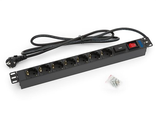 19',7xDE zásuvka,vypínač,bleskojistka,3x1.5mm 2m kabel CZ-DE, RAL9005 FLEXRAB-PD-X12-A1