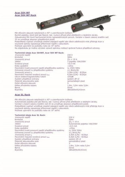 *19" *5m *černá, kovové "uši" pro upevnění do racku *19"Speciální verze modelu acar 504WF určená do 19" skříní.