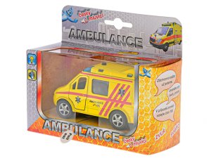 Kovová sanitka o velikosti 11 cm po natažení dozadu (pull back) uhání na pomoc a zároveň toto oznamuje hlášením v českém jazyce a varovnými světelnými signály. Na každém autíčku je pak uvedeno i telefonní číslo 155, které se v budoucnu může hodit každému dítěti a možná tak zachránit lidský život.