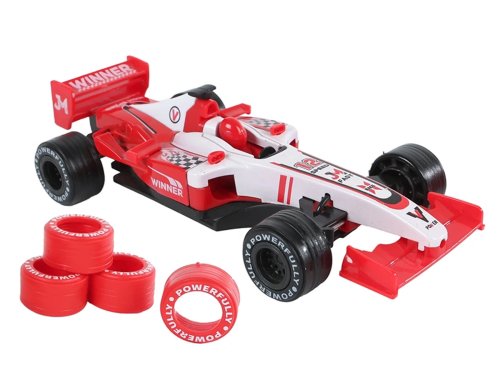 2-Play Traffic formule 17 cm kov zpětný chod s náhradními pneumatikami - mix barev (červená, modrá)