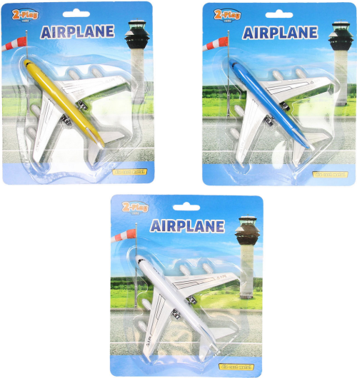 2-Play Traffic letadlo dopravní 14 cm kov na zpětný chod - mix barev (bílé, žluté, modré)