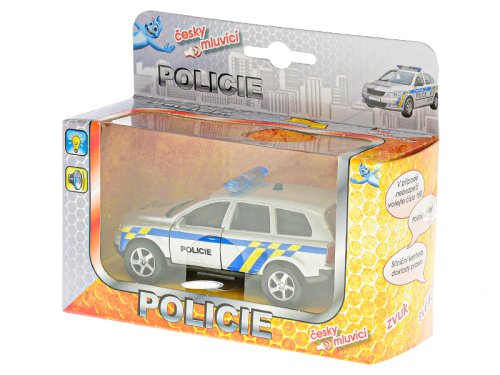 Kovové policejní auto o velikosti 11 cm po natažení dozadu (pull back) uhání na pomoc a zároveň toto oznamuje hlášením v českém jazyce a varovnými světelnými signály. Na každém autíčku je pak uvedeno i telefonní číslo 158, které se v budoucnu může hodit každému dítěti.