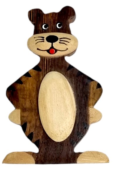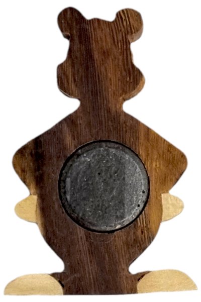 Dřevěný dekorativní magnet ve zvířecím motivu rozzáří každou lednici i tabuli. Roztomilé zvířátko jistě každému vykouzlí úsměv na tváři.Produkt je vyráběn ručně až z pěti druhů dřeva, které je přirozeně různobarevné – žlutý chlebovník různolistý, světlehnědý tamarind manilský, tmavěhnědá kasie obecná, růžová aniba, bílá gmelina arborea. Produkt je pouze ručně domalován, samotné dřevo je přírodní, není barvené. Hlavní vlastnosti: ideální pro milovníky přírody a zvířatskládá se až z 5 druhů přírodního dřevavyráběno i malováno ručnědekorativní prvekvhodné jako drobný dárek
