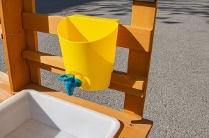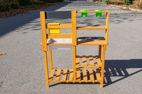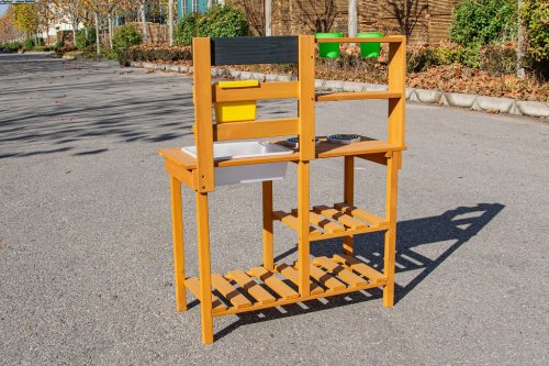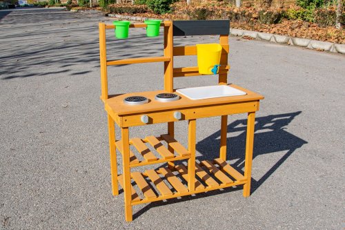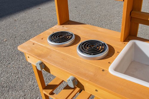 Dopřejte dětem svačinku přímo pod širým nebem a v objetí přírody. Na místě, kde pokrmy voní svěžím vánkem a slunce opéká bochníky z písku a vody, vzniká prostor pro hru plnou fantazie. Tato zahradní kuchyňka nabízí skvělou příležitost, jak u dětí rozvíjet kreativitu, samostatnost a kulinářské dovednosti při hře na čerstvém vzduchu.Kuchyňka je vybavena užitečnými prvky, jako je džbán s kohoutkem, dřez, dvě plotýnky na vaření a dva květináče. Nechybí ani rozsáhlé úložné prostory, které se hodí pro uložení veškerého příslušenství. A jaké je dnes menu? Čistá fantazie! Hlavní vlastnosti: kompaktní rozměrymultifunkční a rozmanité využitírozměrný úložný prostor