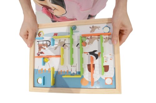 Máte rádi hlavolamy a hádanky? Zaujmou Vás různé bludiště a labyrinty? Pak je pro Vás tento kreativní naklápěcí labyrint tím pravým. Umístěte dřevěné překážky do správných otvorů na desce podle barev, nebo si utvořte dráhu vlastní a hra může začít. Položte kuličky na libovolné místo a nakláněním základní hrací plochy se je snažte umístit do určených otvorů. Nebo můžete dosáhnout stanoveného cíle tím, že budete jednotlivé kuličky cvrnkat do otvorů. Hlavní vlastnosti:•obsahuje 22 dílů•rozvíjí jemnou motoriku a zručnost•zlepšuje obratnost a koncentraci