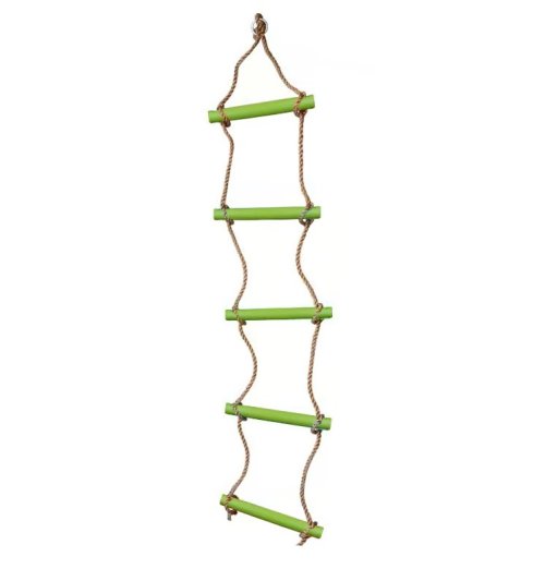 Lanový žebřík s 5 plastovými příčkami v zelené barvě.Nezbytný pomocník pro objevitele venkovní zábavy na dětském hřišti nebo k domečku na stromě. Hlavní vlastnosti: nosnost: 80 kgdélka žebříku je 160 cm