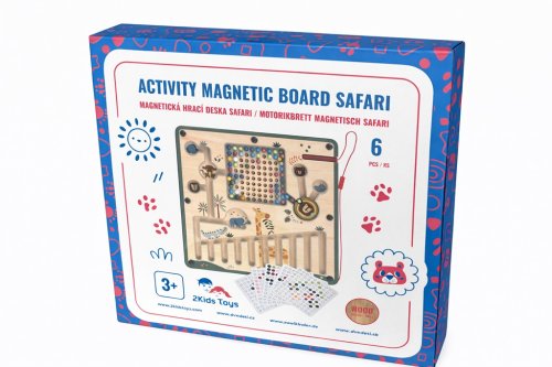 Magnetická hrací deska s motivem roztomilých zvířátek je skvělým pomocníkem pro rozvoj jemné motoriky, logického myšlení a prostorové orientace dětí. Uvnitř čtvercového labyrintu se nachází zásobník s barevnými kuličkami, které se pomocí šňůrkou připojeného magnetického pera přesouvají po vyfrézovaných cestičkách ke zvířátkům nebo do zásobníků. Pero je vždy po ruce a snadno se s ním manipuluje. Děti mohou skládat jednoduché obrázky podle pěti přiložených předloh, vést kuličky ke správným zvířátkům, nebo je třídit do zásobníků podle množství, od nejmenšího po největší. To vše podporuje představivost, koncentraci i schopnost porovnávat a třídit. Hra také rozvíjí jemnou motoriku a koordinaci ruka-oko. Magnetická deska je chráněna průhledným krytem, díky kterému se kuličky nevysypou a hra je tak zcela bezpečná a bez nepořádku. Hračka je ideální pro domácí hraní i jako pomůcka do školek či herních koutků.Hlavní vlastnosti:• magnetické pero připojené k desce• bezpečný průhledný kryt• 5 předloh pro vytváření obrázků• podporuje představivost, koncentraci a schopnost porovnávat a třídit• rozvíjí koordinaci ruka-oko a jemnou motoriku• vhodné od 3 let