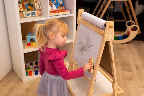 S touto velkou oboustrannou tabulí lze snadno rozvíjet kreativní umělecké dovednosti dětí. Z jedné strany magnetická tabule se suchým stíráním fixů, z druhé strany tradiční tabule pro křídu. Součástí je role papíru, fix, křídy a plstěná houba. Tabule je vybavena velkým odkládacím či úložným prostorem. Tato dřevěná, dvoustranná, multifunkční nástěnka se jistě stane nepostradatelným společníkem Vašeho dítěte. Hlavní vlastnosti: oboustranná tabulevčetně příslušenstvívelký odkládací prostorvyrobeno ze dřeva s certifikací FSCvyhovuje současným evropským bezpečnostním normámpraktická pomůcka k učení Značka a certifikát FSC® (Forest Stewardship Council) zaručuje, že dřevo, ze kterého byl produkt vyroben, nebylo vytěženo nelegálně a pochází z lesů obhospodařovaných šetrným či přírodě blízkým způsobem, ve kterém jsou dodržovány přísné environmentální a sociální požadavky. Značka FSC® na výrobku znamená, že svým nákupem pomáháte chránit lesy a podporujete šetrné, odpovědné či přírodě blízké hospodaření, díky kterému jsou naše lesy stabilnější, zdravější, mají přirozenou druhovou skladbu a lépe odolávají negativním následkům klimatických změn.