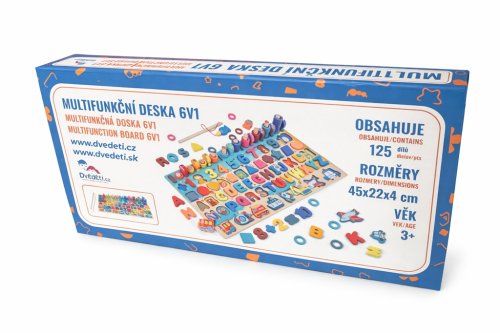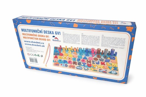 Každý malý šikula si najde to své! Dřevěná multifunkční deska nabízí edukativní hru a pomáhá dětem v koordinaci motoriky, zlepšování koncentrace a rozvoji logického myšlení. Jejím cílem je nejen učení přeměnit na zábavu, ale také vyvinout k učení u nejmenších kladný vztah. Vedle rozpoznávání čísel, tvarů a barev lze v této hře "rybařit" či stohovat kroužky na sebe. Všechny části dřevěné skládačky jsou dimenzovány tak, aby byly ideální pro drobné dětské ruce. Hlavní vlastnosti: multifunkční edukativní hraideální pro trénování motoriky a posílení logického myšlenípodporuje kreativitumění učení na zábavuveselý, pestrý design