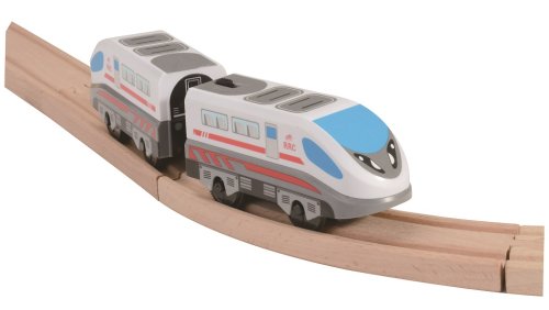 Moderní vysokorychlostní vlak na baterie v elegantním designu potěší každého malého fanouška železnice! Stylová modro-bílá souprava s realistickými detaily je ideální pro všechny děti, které milují rychlá vozidla. Lokomotiva je poháněná bateriemi a dokáže jezdit sama, takže přináší ještě víc zábavy a akce. Pomocí magnetu je propojena s vagonkem – jejich spojení je jednoduché, a děti tak mohou snadno vlak rozpojit i složit. Vlak je plně kompatibilní s běžnými dřevěnými vláčkodráhami, takže ho snadno zařadíte do již existujících herních světů. Skvělá volba pro rozvoj jemné motoriky, koordinace pohybů a dětské fantazie. Hlavní vlastnosti: lokomotiva s vagonkem v moderním designuelektrický pohon (baterie 1×AA 1,5 V, nejsou součástí balení)dřevěné koleje nejsou součástí balenímagnetické spojování vagónůpodporuje jemnou motoriku, koordinaci a představivostkvalitní provedenívhodné pro děti od 3 letkompatibilní s vláčkodráhami ostatních výrobců