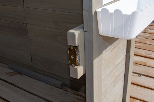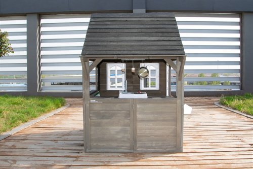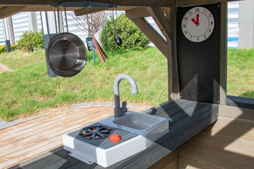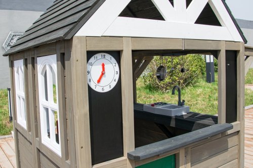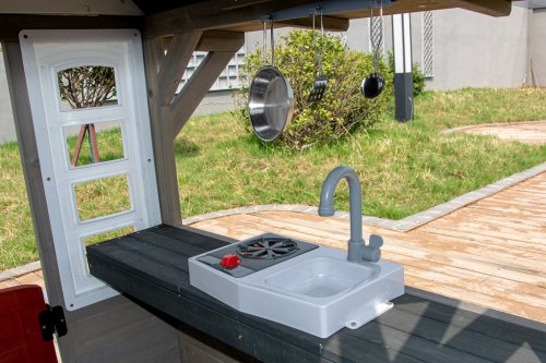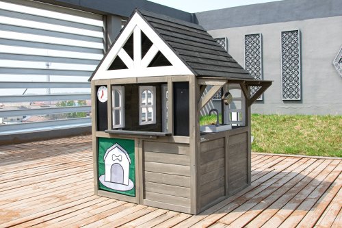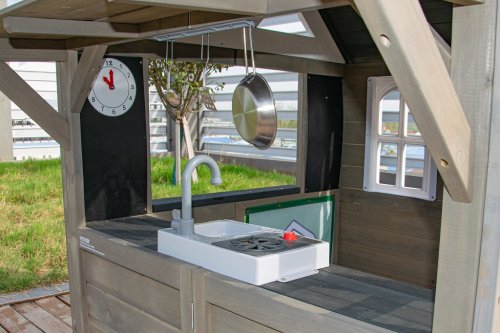 Kdo by netoužil po svém vlastním bydlení! Dopřejte svým dětem klidný kout, kde můžou odpočívat, mít soukromí a nerušeně si hrát. V tomto rozkošném domečku se budou cítit jako v pohádce. Velké boční okno nabízí krásný výhled do okolí a umožní proměnit domeček v prodejní stánek nebo obchod. V útulné kuchyňce, ve které nechybí varná deska s otočným červeným knoflíkem, dřez a základní nádobí, předvedou malí kuchaři a kuchařky své kulinářské dovednosti a připraví pro kamarády nebo rodiče chutné menu. Dalšími stylovými doplňky jsou hodiny, truhlíky po stranách vstupních dveří, ve kterých se budou krásně vyjímat květiny, praktický vstup pro pejska, který je překryt látkovým závěsem s motivem psí boudy. Domeček je vyroben ze dřeva a opatřen nátěrem v přírodních barvách. Bude skvělým doplňkem a ozdobou každé zahrady nebo menšího venkovního prostoru. Tak na co ještě čekáte? Pojďte dál a buďte tady jako doma! Hlavní vlastnosti: kuchyňský kout s vybavením (varná deska, dřez, pánev, 2 ks náčiní), truhlíky, vstup pro pejskarozvíjí sociální dovednostiútulný designkvalitní a detailní provedenívhodné pro hru více dětídodáváno v rozloženém stavunávod na sestavení je součástí balení Informace pro B2B partnery: dropshipping v rámci ČR!