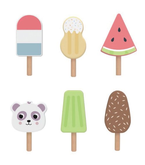 To je ale horko! Což tahle dát si něco studeného? Vyberte si ze šesti různých nanuků. Je libo čokoládový, vanilkový nebo snad melounový? Sada nanuků v praktickém stojánku se stane nepostradatelným doplňkem každé kuchyňky. Hraní rolí rozvíjí komunikační dovednosti dětí, slovní zásobu a představivost. Hračka je vyrobena z kvalitního FSC dřeva. Hlavní vlastnosti: podstavec se 6 nanukyrozvíjí komunikační dovednostivede k představivé hřevyrobeno ze dřeva s certifikací FSC®vhodné od 2 let věku Značka a certifikát FSC® (Forest Stewardship Council) zaručuje, že dřevo, ze kterého byl produkt vyroben, nebylo vytěženo nelegálně a pochází z lesů obhospodařovaných šetrným či přírodě blízkým způsobem, ve kterém jsou dodržovány přísné environmentální a sociální požadavky. Značka FSC® na výrobku znamená, že svým nákupem pomáháte chránit lesy a podporujete šetrné, odpovědné či přírodě blízké hospodaření, díky kterému jsou naše lesy stabilnější, zdravější, mají přirozenou druhovou skladbu a lépe odolávají negativním následkům klimatických změn.