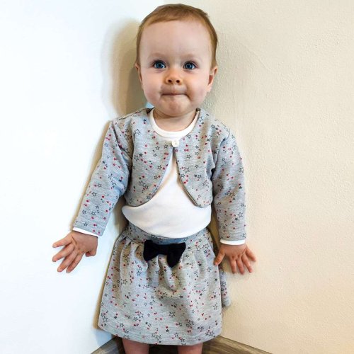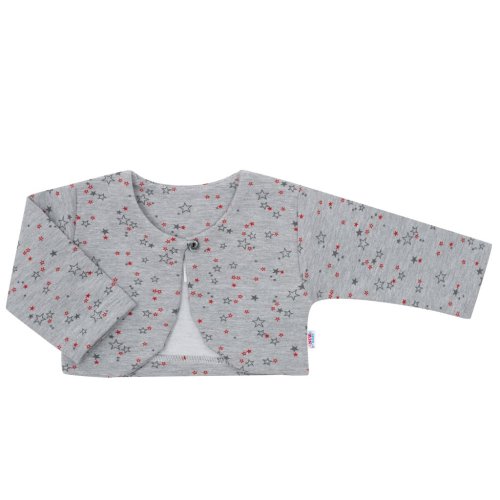 Krásná a praktická 3-dílná holčičí soupravička české značky New Baby Emma. Součástí kojenecké soupravičky je sukýnka, bolerko a čelenka. Roztomilá holčičí sukýnka Áčkového střihu je celopotištěná hvězdičkami s širším lemem v pase s gumičkou. Bolerko s dlouhým rukávem má zapínáni na jeden knoflíček. Stylová čelenka je široká, pružná a skvěle nahradí čepičku v mírně chladném počasí. Soupravička je precizně a kvalitně ušitá a je vyrobená z velmi příjemného materiálu, ve kterém se bude vaše holčička cítit velmi pohodlně. Složení: 97% bavlna, 3% elastan.