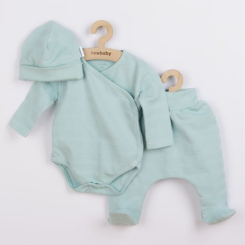 Roztomilá kojenecká 3-dílná soupravička české značky New Baby I AM pro miminka. Soupravička je vyrobena z velmi příjemného, měkkého a kvalitního materiálu, který je vhodný pro miminka a je vhodná nejen do porodnice. Obsahuje celorozepínací body s dlouhým rukávkem, polodupačky a čepičku. Body má boční zapínání po celé délce a mezi nožičkama na cvočky. Polodupačky mají v pase širší pružný lem, který netlačí na bříško miminka. Čepička s širším lemem dobře drží na hlavičce miminka a nepadá. Je velmi praktická a netlačí na hlavičku miminka. Celá soupravička má nový neobyčejný design s atraktivním vzorem látky. Je navržena s ohledem na potřeby miminka a je vhodná i jako milý dáreček. Soupravička je v praktické Eko krabičce. Složení: 100% bavlna.