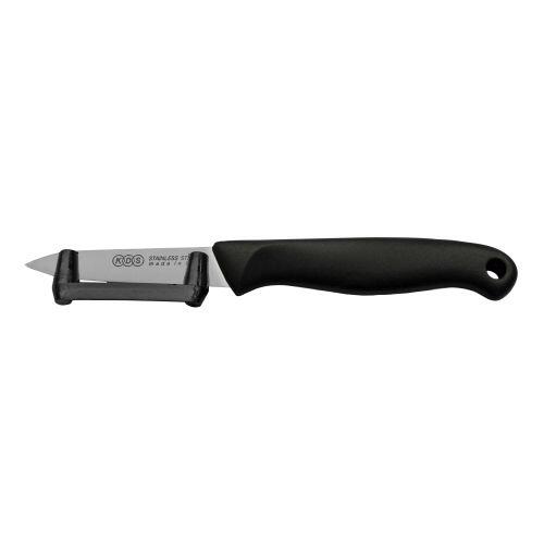 Škrabka na brambory pro praváky s plastovou příložkou, je vynikající pro snadné škrabání brambor nebo zeleniny.