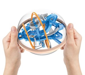 Hlavním úkolem je provést kuličku bludištěm. 3D bludiště, ve kterém musíš manévrovat malou kuličkou přes náročné překážky od začátku (pozice 1) až do konce (pozice 80). Plastovou kouli, do které je celý labyrint uzavřen, budeš muset mnohokrát otočit o 360°. Klíčem k vítězství je trpělivost, kdo spěchá, daleko se nedostane. Otáčej hlavolamem tak, aby byla kulička stále v rovnováze, jinak hrozí, že vypadne a ty budeš muset začít znovu. Přemýšlej a zkoumej dráhu, čeká tě spousta nástrah, které budou potřebovat přesný pohyb a rychlost. Vyřešit některé úseky nemusí být vždy lehké, ale vše se dá zvládnout. Rozměr hlavolamu: 18 cm Rozměr krabice: 19 x 20 x 19 cm Vhodné pro děti od 3 let.
