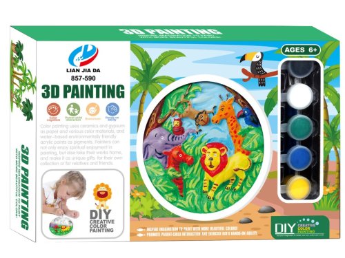 Výrobek pomáhá rozvíjet kreativitu a jemnou motoriku dítěte. Sada malování pro malé umělce v designu divokých zvířat, namaluj si svůj 3D obrázek ze sádry. Smíchej barvy a tvoř další barvy.