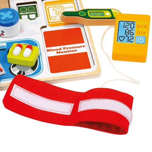 "3D barevné dřevěné puzzle ""Doktor"". Balení osahuje 14 dílků s pevnou deskou vyrobenou z překližky. Děti se učí rozpoznávat a přiřazovat běžné náčiní z lékařské praxe. Procvičují zde jemnou motoriku, logické myšlení, soustředění ruka-oko. "