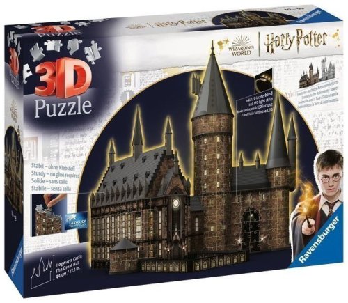 Velká síň Bradavického hradu v noční svítící edici! Zažijte jedinečnou kombinaci skládání a stavění a vytvořte si doma dokonalý model jedné z nejvyužívanějších částí Bradavického hradu - Velké síně a rozsviťte ho pomocí LED světla. Ponořte se do světa Harryho Pottera a zažijte spoustu dobrodružství s Harrym a jeho přáteli. Kvalitní, plastové puzzle s technologií Easyclick. Bez nutnosti lepení! Tento model Velké síně lze spojit s modelem Astronomické věže do jednoho impozantně velkého modelu Bradavického hradu. Díky osvětlení model po setmění působí přímo magickým dojmem. Pro osvětlení si můžete vybrat mezi bílým světlem a barevnými světelnými variantami.