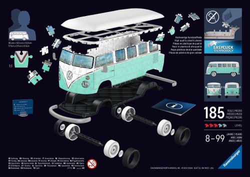 Zažijte jedinečnou kombinaci skládání a stavění a vytvořte si působivý model VW Autobusu. Kvalitní, plastové puzzle s technologií Easyclick. Bez nutnosti lepení!