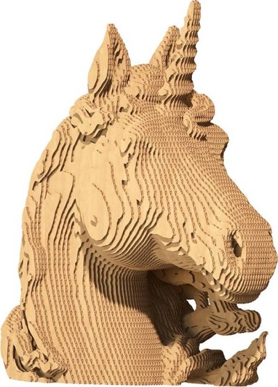 Vytvořte si 3D prostorové puzzle mýtického jednorožce. Sestavování kartónových plátků 3D Cardboard Scuplture Puzzle je zábavou pro všechny generace.