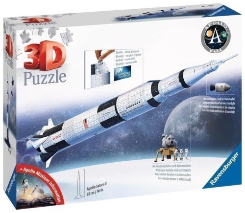 Fascinuje vás vesmírný program? Zažijte jedinečnou kombinaci skládání a stavění a vytvořte si jedinečný 3D Puzzle model vesmírné rakety Apollo Saturn V ze 432 kvalitních plastových dílků. Světově proslulá raketa misí Apollo jako působivé 3D puzzle v celkové výšce téměř 1 metru vás naprosto ohromí. Součástí tohoto 3D Puzzle modelu jsou rovněž oddělitelné raketové stupně, lunární přistávací modul, velitelský modul a 3 figurky astronautů. Jako součást balení také najdete podrobné informace o misích Apollo a prvním přistání na Měsíci a podstavec pod raketu. Kvalitní, plastové 3D puzzle s patentovanou technologií EasyClick. Bez nutnosti lepení!