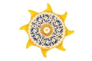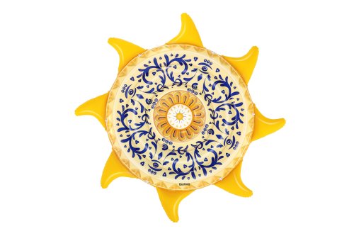 Užijte si léto ve velkém stylu s nafukovacím lehátkem ve tvaru Slunce. Barevné vzory na lehátku jsou inspirovány tradičním středomořským a sicilským uměním. Snadné nafouknutí, vyfouknutí a složení. Provaz pro uchopení s průchodkami po celém obvodu. Sada obsahuje: 1 nafukovací lehátko, 1 opravnou záplatu. Rozměr lehátka: 226 × 226 cm. Vyrobeno z kvalitního a odolného vinylu. Maximální nosnost: 90 kg. Určeno pro 1 dospělou osobu.