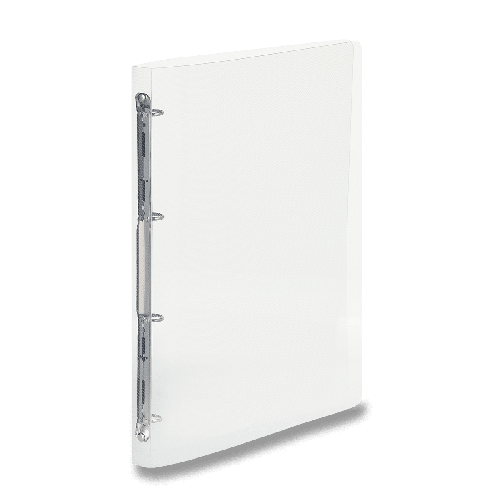 Transparentní polypropylenový 4kroužkový pořadač, kroužek ø 20 mm. Hřbet 25 mm.