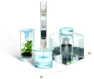 Filtrace a recyklace vody: Hlavním účelem sady je naučit děti, jak lze špinavou vodu čistit a znovu použít pomocí různých metod. Jedná se o praktické seznámení s environmentální vědou.