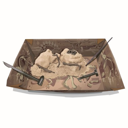 Set pro vykopání a sestavení kostry dinosaura zalité do sádry. Obsahuje potřebné nástroje.