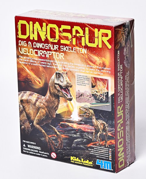4M Dig a Dinosaur Skeleton: Velociraptor je poutavá a vzdělávací STEM sada z kolekce KidzLabs, která transformuje dětský pokoj na archeologické naleziště. Děti se s ní mohou vžít do role paleontologa a objevit kostru jednoho z nejrychlejších a nejchytřejších prehistorických predátorů – Velociraptora.