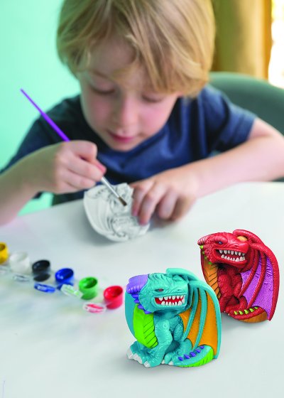 Odlij si ze sádry figurky draků a vybarvi je podle své představivosti. Sada rozvíjí dětskou představivost a kreativitu.