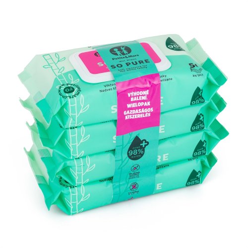 Vlhčené ubrousky So pure představují dokonalou čistotu z přírody. Ubrousky jsou vyrobeny z bambusu a obsahují více než 98% vody. Jsou bez parfémů, citlivé k jemné dětské pokožce a velmi měkké a příjemné na dotek. Tento produkt si vybírají rodiče, kteří upřednostňují přirozenou a bezpečnou péči.