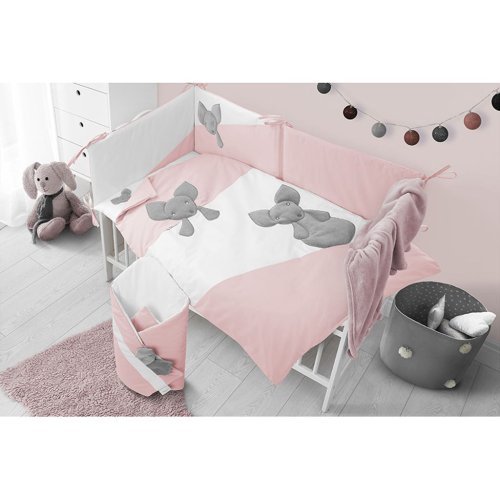 Krásná dětská bavlněná 5-dílná souprava do postýlky Belisima Mouse pro miminka. Souprava je zdobena krásným motivem myšek. Je vyrobena z měkkého, příjemného materiálu. Souprava obsahuje povlečení na polštářek cca 40x60 cm, povlečení na peřinku cca 100x135 cm, mantinel cca 180 cm, výplň polštářek a peřinka. Materiál 100% bavlna.<BR>Tyto výrobky jsou bezpečné, protože:<BR>- přírodní bavlna nezpůsobuje odřeniny a podráždění, jelikož neobsahuje formaldehydy a další prvky, které kojencům škodí<BR>- neztrácí barvu a nezabarvuje oblečení<BR>- nabízené vzory jsou příjemné na pohled a mají uklidňující barvy<BR>- zipy používané u povlečení jsou tzv. "bezpečné zipy" bez volně visící koncovky, kterou by mohlo dítě utrhnout a spolknout<BR>- nejsou použity žádné knoflíky ani žádné další plastové nebo ocelové části, které mohou být pro Vaše dítě nebezpečné<BR>- materiál, který je používán pro výplně polštářů a přikrývek, je 100% protialergický, což znamená, že se v jeho vláknech nešíří žádné mikroorganismy ani plíseň.