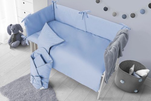 Krásná dětská bavlněná 5-dílná souprava do postýlky Belisima Palermo pro miminka. Je vyrobena z měkkého, příjemného materiálu. Souprava obsahuje povlečení na polštářek cca 40x60 cm, povlečení na peřinku cca 100x135 cm, mantinel cca 180 cm, výplň polštářek a peřinka. Materiál 100% bavlna.<BR>Tyto výrobky jsou bezpečné, protože:<BR>- přírodní bavlna nezpůsobuje odřeniny a podráždění, jelikož neobsahuje formaldehydy a další prvky, které kojencům škodí<BR>- neztrácí barvu a nezabarvuje oblečení<BR>- nabízené vzory jsou příjemné na pohled a mají uklidňující barvy<BR>- zipy používané u povlečení jsou tzv. "bezpečné zipy" bez volně visící koncovky, kterou by mohlo dítě utrhnout a spolknout<BR>- nejsou použity žádné knoflíky ani žádné další plastové nebo ocelové části, které mohou být pro Vaše dítě nebezpečné<BR>- materiál, který je používán pro výplně polštářů a přikrývek, je 100% protialergický, což znamená, že se v jeho vláknech nešíří žádné mikroorganismy ani plíseň.