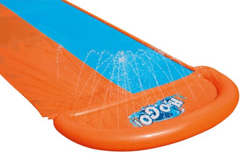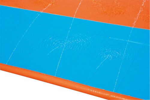 Bestway® H2OGO!® Vodní skluzavka pro 2 osoby 488 x 138 cm. H2OGO!™ nabízí klasickou letní zábavu na zahradě. Díky dvěma dráhám mohou děti závodit na skluzavce. Zabudované zavlažovače SplashBoost™ s připojením na zahradní hadici vytvářejí kaskádový efekt a udržují dráhy kluzké. Na konci skluzavky stéká voda do bazénku, takže v cílí čeká každého mokrá odměna. Součástí skluzavky je vypouštěcí ventil. Děti si užijí hodiny strávené na skluzavce a rodiče ocení, jak snadné je postavit – stačí ho připojit k zahradní hadici a zábava začíná. Vyrobeno z odolného UltraSlick™ PVC. Obsah: 1 nafukovací skluzavka, 1 opravná sada. Délka skluzavky: 488 cm. Šířka skluzavky: 138 cm. Rozměry balení: 30 x 30 x 5 cm. Používejte výhradně venku a pouze pod dohledem dospělé osoby. Věk: 3+