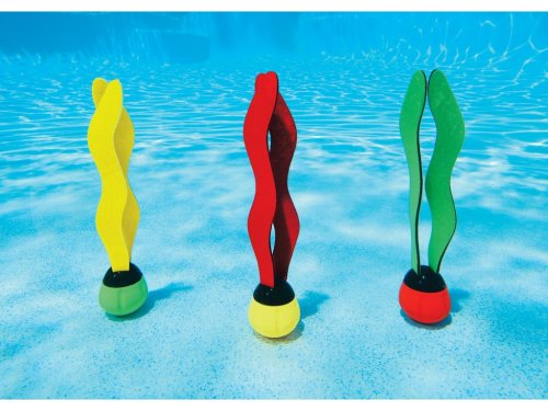Hoďte míček do bazénu, ten se potopí na dno a děti tak mají výbornou příležitost procvičit si potápění při lovení míčků. Vhodné od 6 let. Vhodné od 3 let.