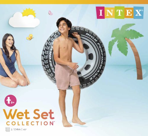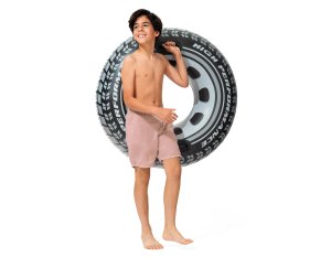 Nafukovací maxi kruh na plavání pro děti na vodu, se dvěma madly, v podobě pneumatiky. Nafukovací kruh pneumatika je plavecká pomůcka pro plavání a vodní hrátky. Tloušťka materiálu 0,25 mm, průměr kruhu 114 cm. Maximální zatížení je 100 kg. Rozměry balení 23 x 20 x 6 cm. Vhodné pro děti od 9 let.
