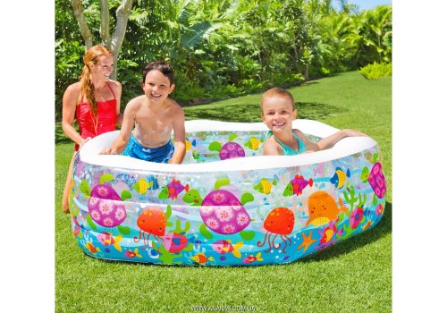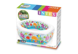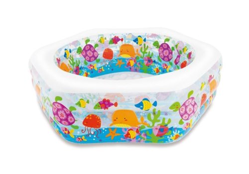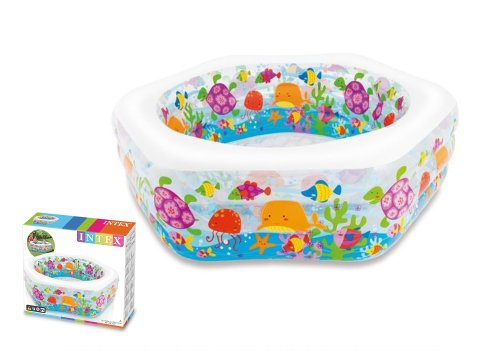 Jaké by to bylo léto, bez vody a koupání. Tento veselý bazén Oceán má zvláštní hranatý tvar ve formě hvězdy a jeho potisk znázorňuje živočichy, kteří žijí v oceánu.