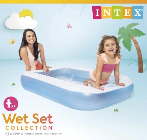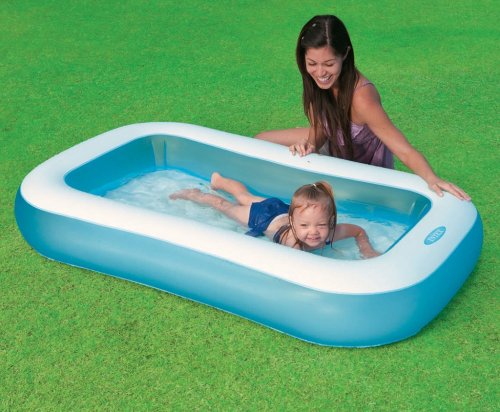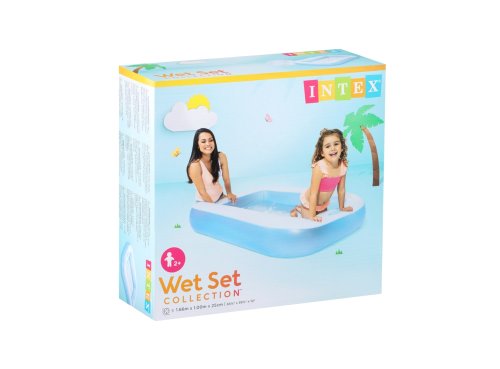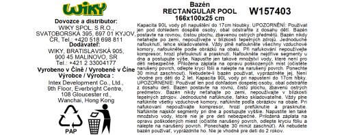 Dětský nafukovací bazének v modro – bílém provedení obdélníkového tvaru pro horké letní dny. Bazén s měkkou nafukovací podlahou zpříjemní koupání vašim dětem. Bazén je vyroben z kvalitního masivního vinylu o tloušťce 0,30 mm. Je vhodný nejen na zahradu, ale třeba také na balkón nebo terasu. Objem vody při výšce hladiny 17 cm činí 90 litrů. Pro drobná poškození je součástí balení opravná sada. Rozměry bazénu 166 x 100 x 25 cm. Rozměry balení 26 x 23 x 8 cm. Vhodné pro děti od 2 let.