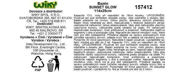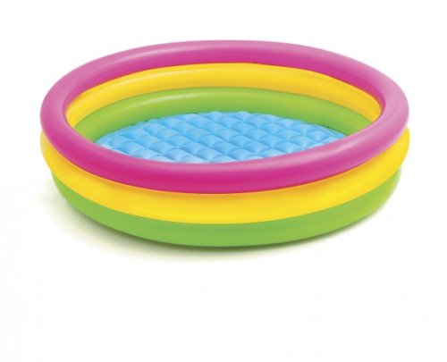 Dětský bazének je složený ze tří prstenců, každý z nich se nafukuje samostatně. Podlaha z měkčeného PVC zabraňuje odření a současně působí protiskluzově. Bazén lze umístit kdekoliv, kde bude nejmenším plavcům vyhovovat. Pod bazén je vhodné dokoupit ochranou podložku. Parametry bazénu: průměr: 1,14 m; výška: 0,25 m; objem: 131 l; váha balení: 1,16 kg. Obsah balení: bazén, sada na opravu. Vhodné pro děti od 2 let.