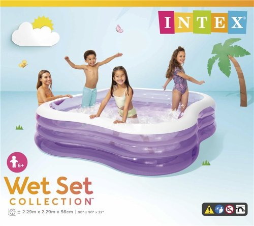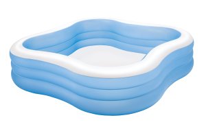 Nafukovací bazén, velikost: 229 x 229 x 56 cm, objem: 1250 l při vodní hladině 33 cm, vinyl 0,33 mm, 3 nafukovací komory, vypouštěcí ventil, opravná sada