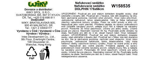 Je nafukovací hračka vhodná jak do bazénu, tak na jezero nebo do moře. Tvar delfína je přizpůsobený tak, aby umožňoval pohodlné sezení pro jedno dítě. Delfín je opatřen na bocích držátky.