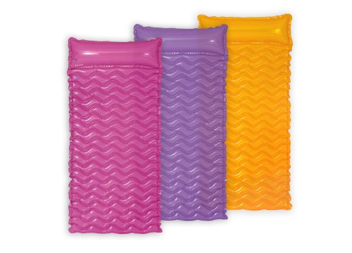 Nafukovací lehátko o rozměrech 229 x 86 cm, s motivem vln a integrovaným polštářem. 2 vzduchové komory, dvojité svařené rohy a vinyl o tloušťce 0,25 mm zajišťují pevnost a příjemný komfort při ležení. Vlnkovitý tvar je hlavním rysem tohoto modelu, díky kterému je snadné ji sbalit a dát do tašky - bez odfouknutí. Maximální nosnost je 100 kg.