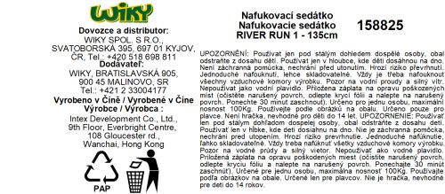 výrobce INTEX barva modro/bílá materiál vinyl pevná držadla zabudovaná opěrka na záda dva držáky na pití dvě vzduchové komory lano po obvodu konektor umožňující spojení více nafukovaček Velikost: průměr 135 cm Nosnost 100 kg Doporučený věk: od 14 let