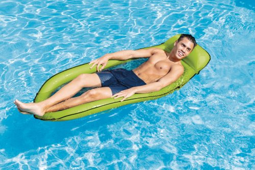 Lehátko s nafukovacím obvodem a polštářem pod hlavu, které Vám zajistí zaručený relax do horkých letních dnů. Síťovina, tvořící výplň lehátka, zajišťuje příjemné osvěžení na horkém slunci.